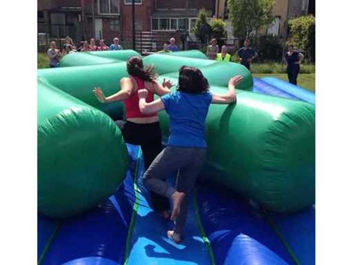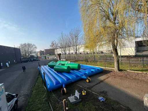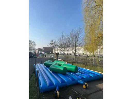 Castello gonfiabile a zigzag. Davvero un castello molto bello. Bambini e adulti si divertiranno per ore su di essa.