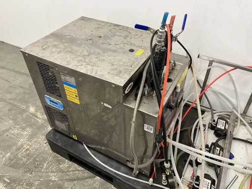 Pompe per sciroppo di V.v. Flojet e regolatori e connessioni di pressione per anidride carbonica.