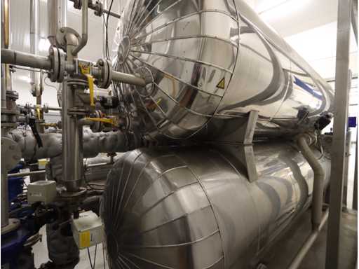 Equipaggiato con 1x serbatoio tampone (5700 litri) e serbatoio autoclave (6000 litri), dimensione serbatoio Ø 1400 mm, lunghezza 4750 mm, dotato di porta ascensore, varie pompe e scatola di controllo