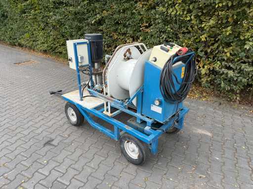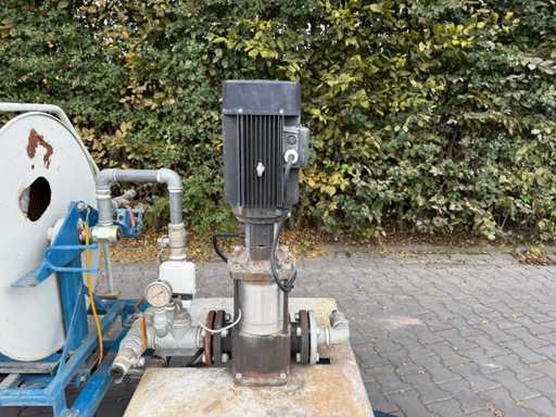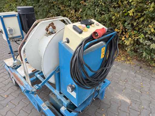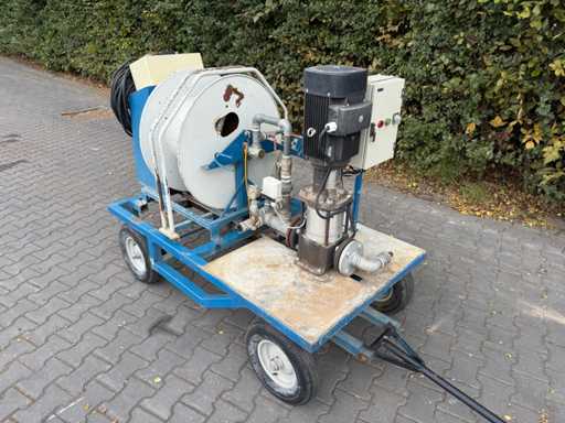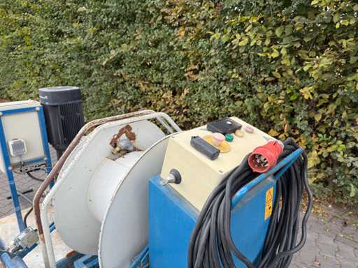 Spina 400V 16A a 5 poli, pompa Grundfos, avvolgitore regolabile in velocità, con guida tubo, telecomando,