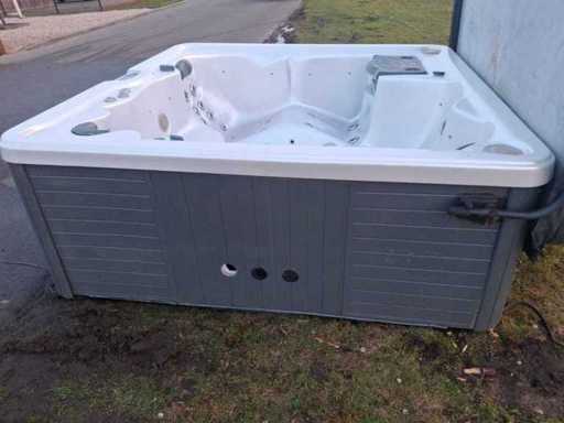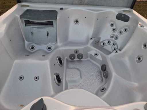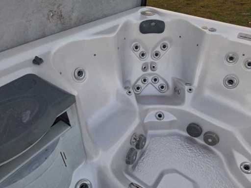 Dotato di sollevamento per la copertura; massaggio collo/spalle; inclusa copertura; Jacuzzi americana; altoparlanti; involucro in plastica; cascata; Non testato per il funzionamento (margine, senza IVA)