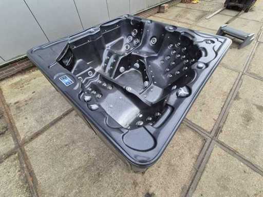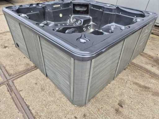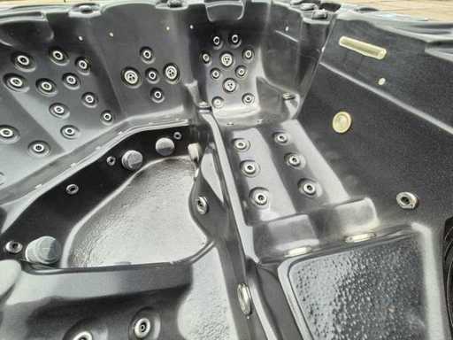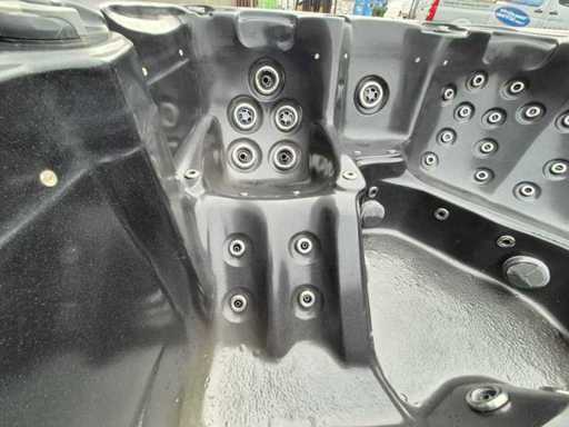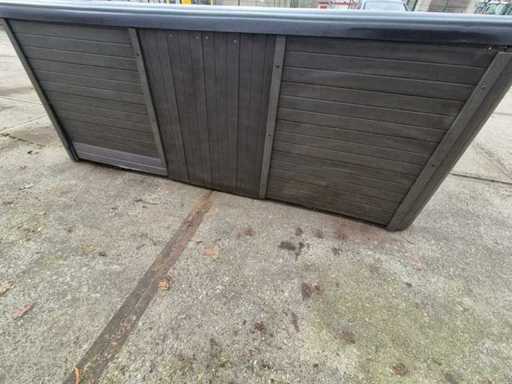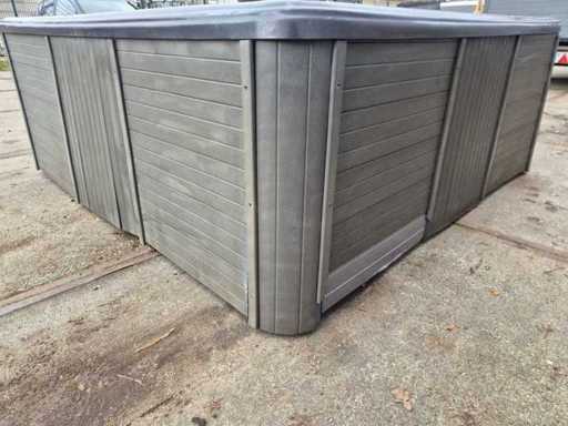 Dotato di 2 cucche; 4 seggi; massaggio collo/spalle; cascata; Getti massaggianti in acciaio inox; involucro in plastica; sistema di filtrazione automatico; (nota il lavoro in legno all'interno e il deterioramento del terreno) Non testato per il funzionamento (margine, senza IVA)
