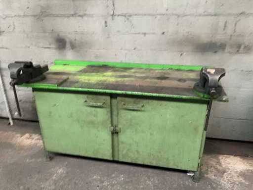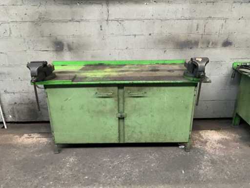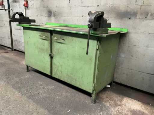 Banco da lavoro in acciaio con 2 morse