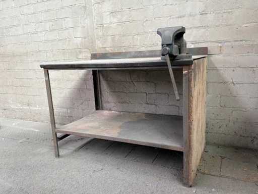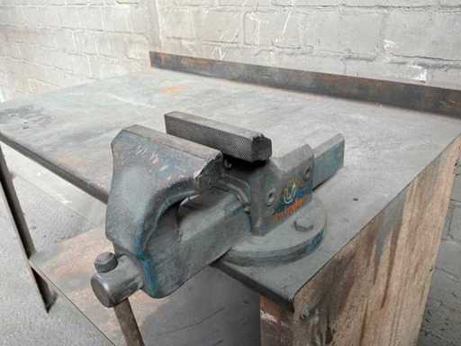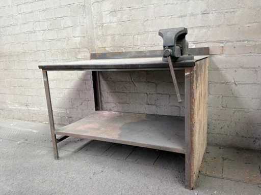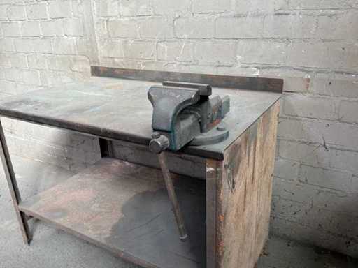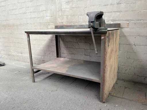 Banco da lavoro in acciaio con morsa