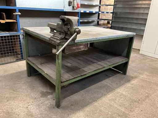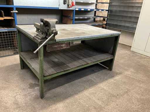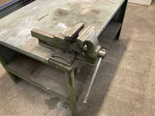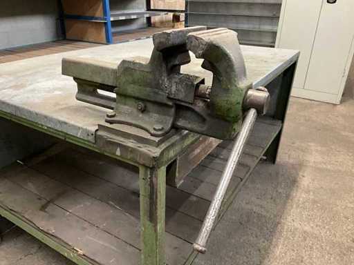 Banco da lavoro in acciaio con morsa