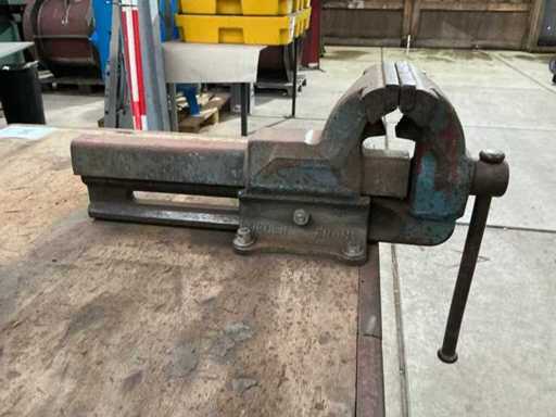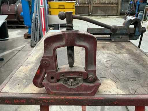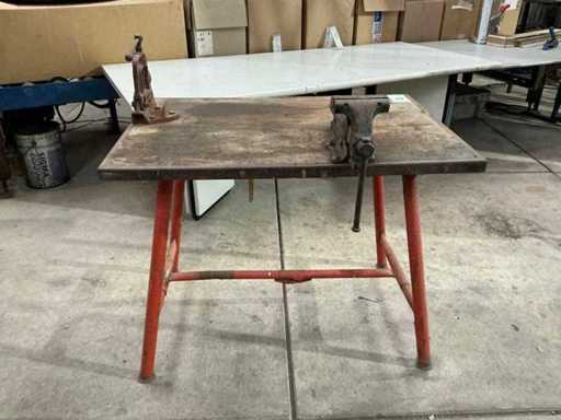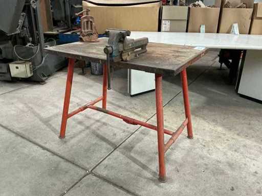 Telaio in acciaio (pieghevole) con piano di lavoro in legno, morsa HEUER e morsetto per tubi