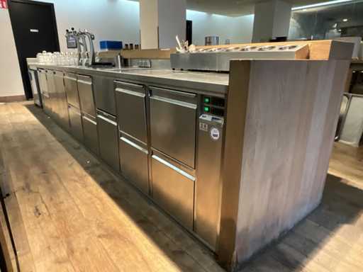 CAUTELA! I rubinetti non fanno parte del lotto. CAUTELA! I refrigeratori sono collegati a un sistema di raffreddamento centralizzato. Lot non dispone di un proprio compressore di refrigerazione. Il sistema di raffreddamento centralizzato è già stato pompato professionalmente. CAUTELA! Il lotto riguarda la barra e i relativi raffreddatori in acciaio inox. Altri oggetti nelle foto NON fanno parte del lotto. L'acquirente è responsabile dello smantellamento professionale del lotto.