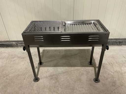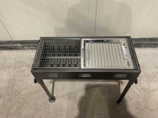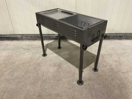Dotato di alloggiamento in acciaio inox; Altezza regolabile; BBQ per 5-10 persone; Grigliere rimovibili, gambe rimovibili; superficie della griglia 62 x 26 cm; Colore: nero; Inutilizzati nella scatola