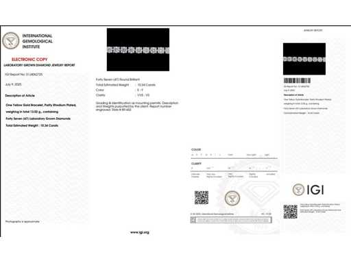 Bracciale in oro giallo 14 carati con 10.34 ct diamante