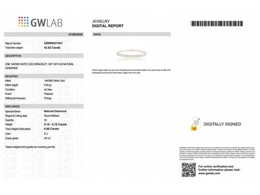 Bracciale tennis in oro bianco 14 kt con diamante naturale 8,68 crt
