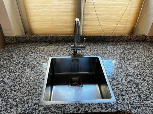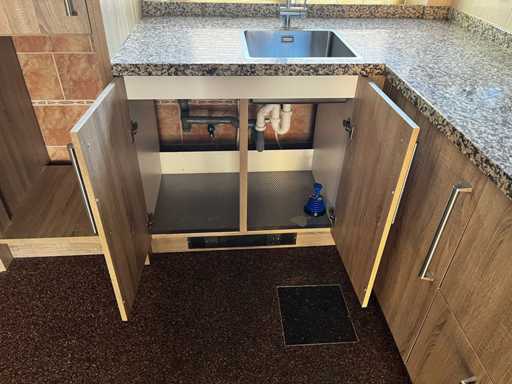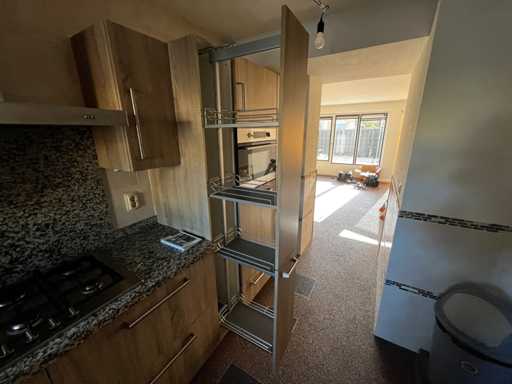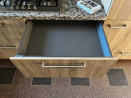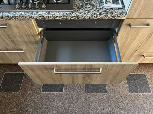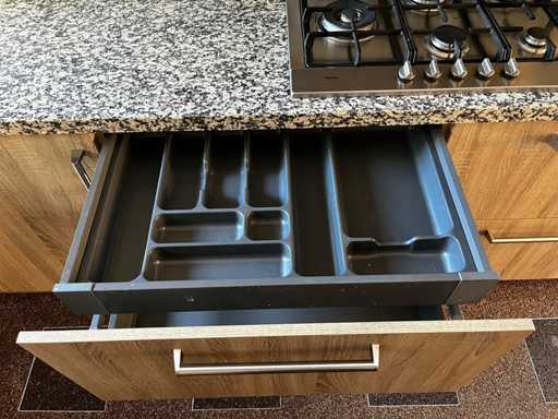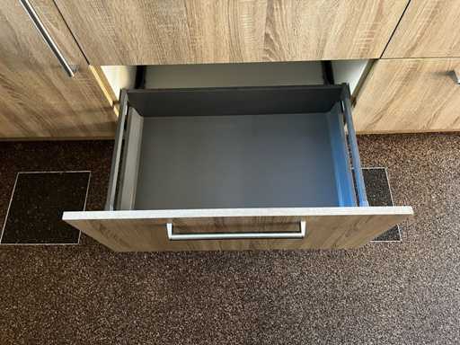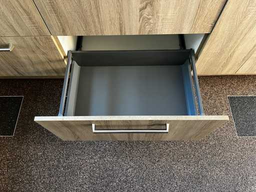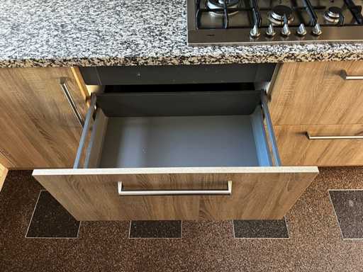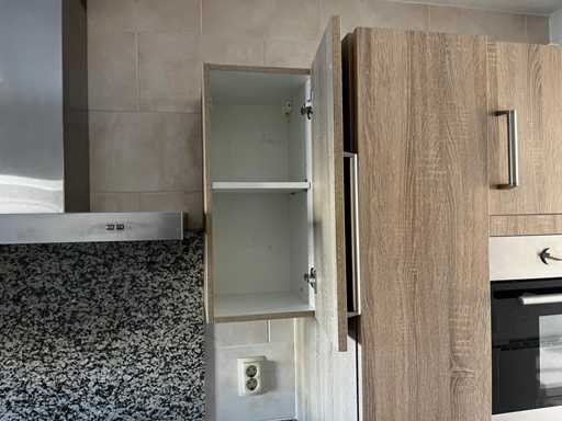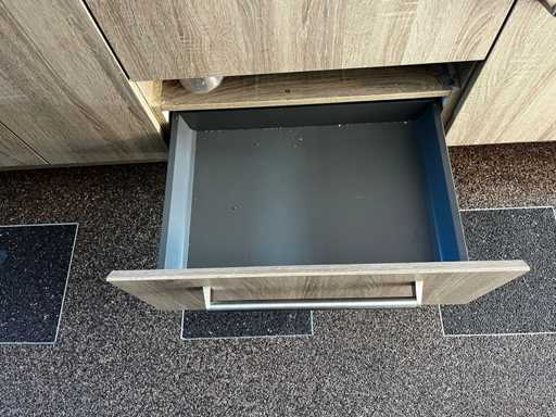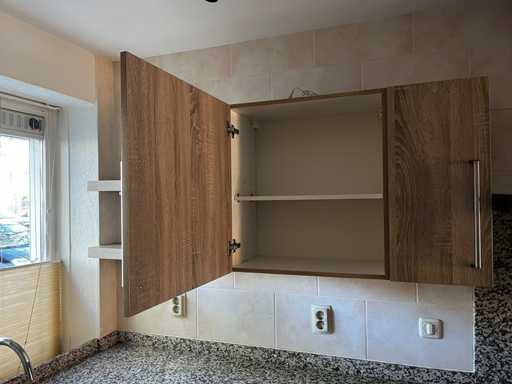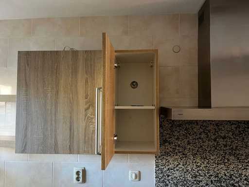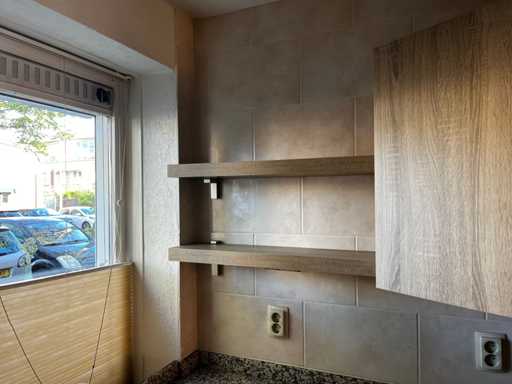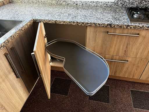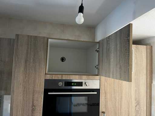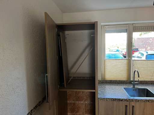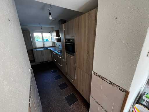 Condizione: usato; dimensioni: parte sinistra: circa 224x60 cm; dimensioni parte destra circa 303x60 cm; dimensioni: parete armadio: circa 157x60x210 cm; nota, foglia danneggiata; già smontato e imballato su pallet. (accatastamento, scambio o deposito per pallet); i pallet non sono inclusi; pagare un deposito al momento del ritiro o impilare i pallet; piano di lavoro non imballato su pallet (25-2DE-01933)