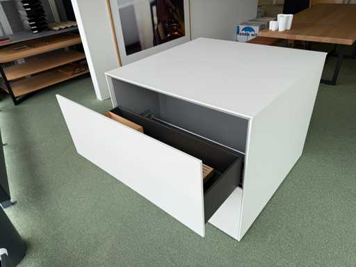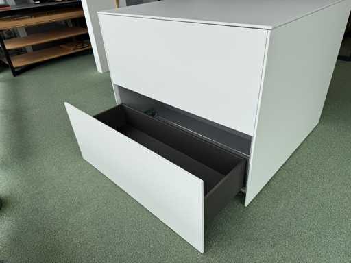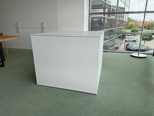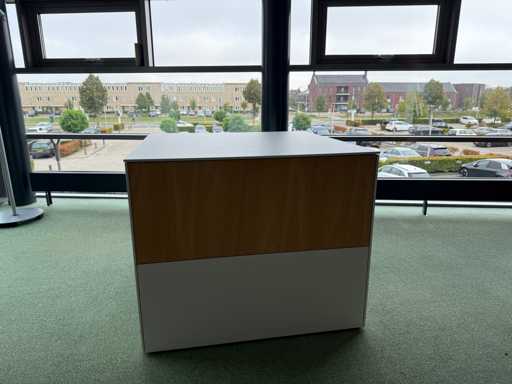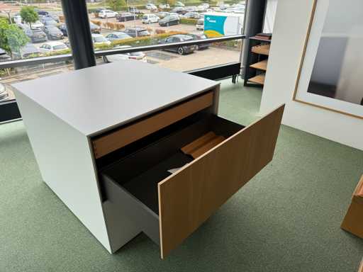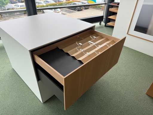 blocco isola separato; blocco di preparazione; in parte plastica, in parte impiallacciatura; dotato di piano in laminato; Fronti a terra
