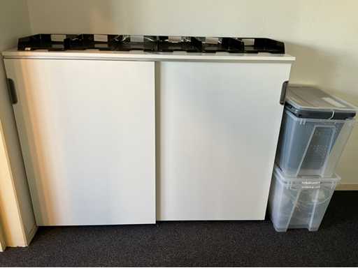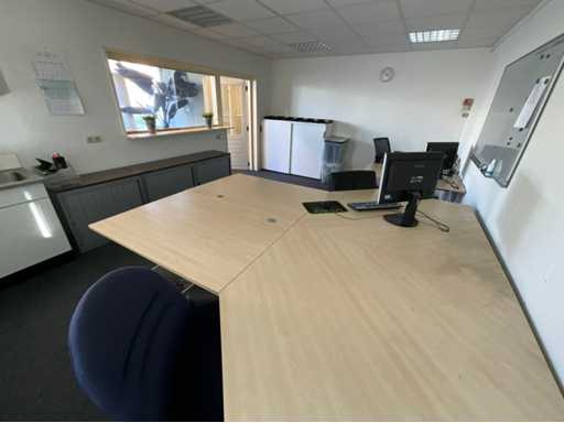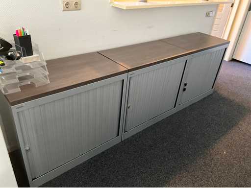 Arredo ufficio con 3 postazioni di lavoro e armadi avvolgibili
