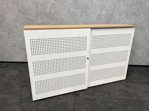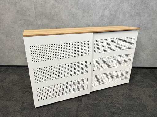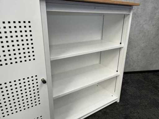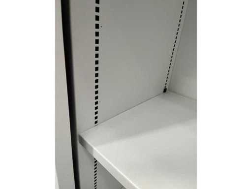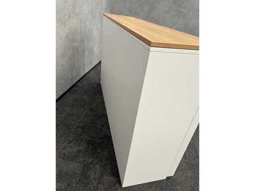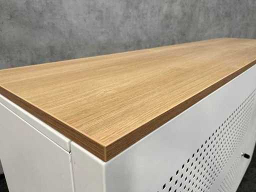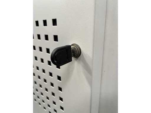 Con chiave, dotato di 4 mensole regolabili e un piano in melamina dall'aspetto di quercia
