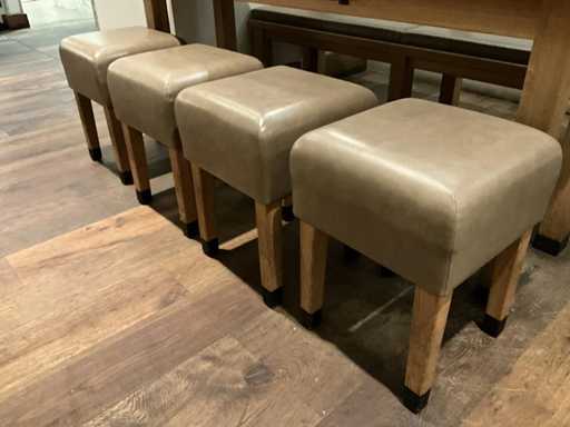 Cabine - Sgabello in legno con sedile in pelle (4x)