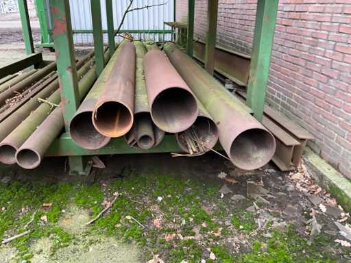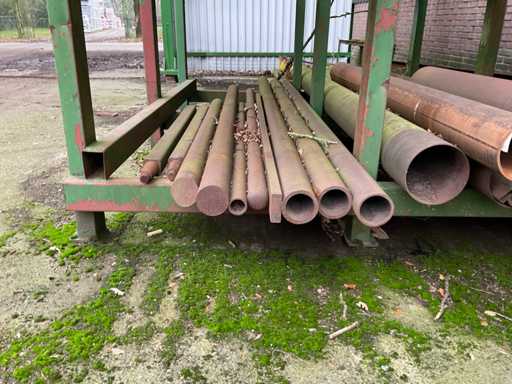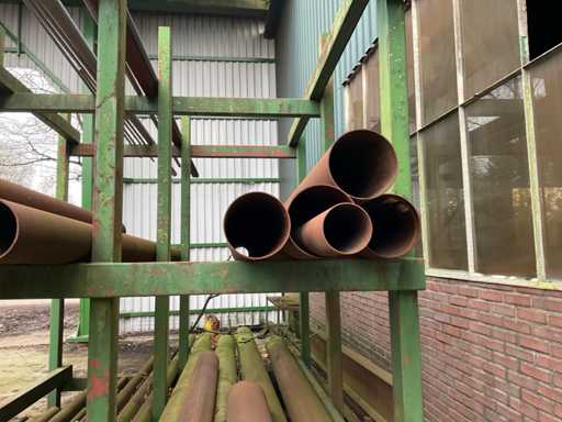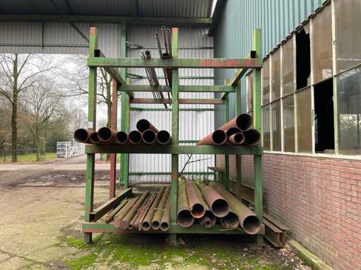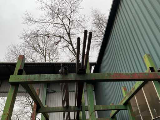 Riguarda il contenuto della cremagliera del materiale della barra, inclusi tubi ø da 115 mm a circa 260 mm, lunghezza fino a circa 6500 mm, acciaio rotondo, ecc. Incluse le dimensioni del portapacchi a barre saldate lxbxh 380x300x370cm