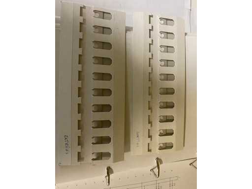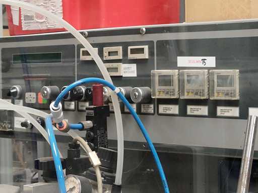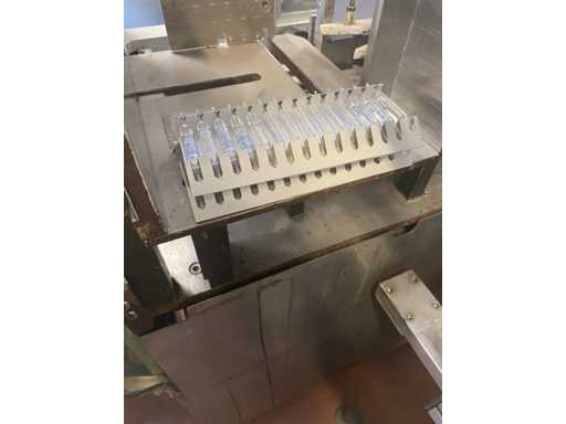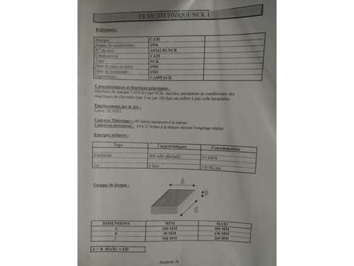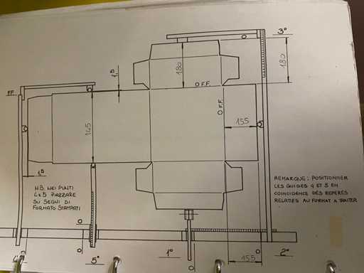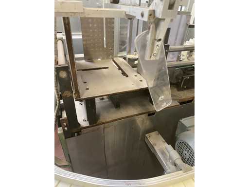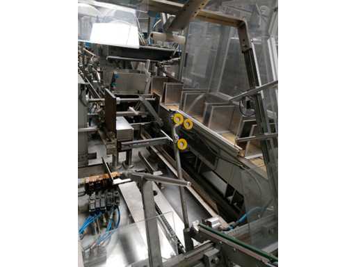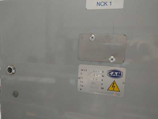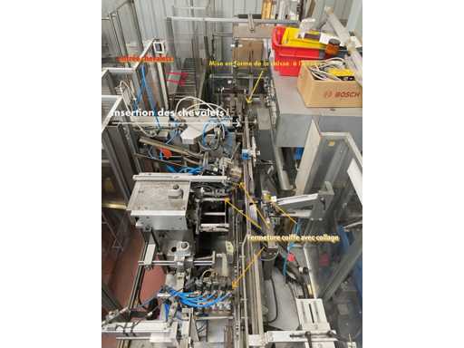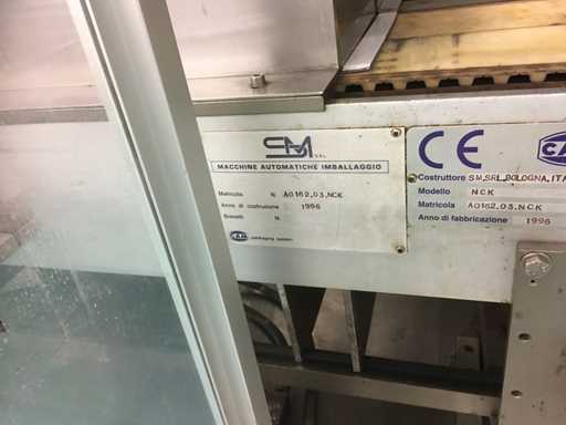 Produttore: CAM Modello: NCK Anno: 1996 Utilizzo: confezionamento di pile di cavalletti (in pacchetti da 5 o 10) Due moduli: raggruppamento dei ponti e imballaggio delle casse Portata: massimo 12 lattine/minuto Intervallo di formato: • A: 100 – 300 mm • B: 30 – 130 mm • C: 100 – 260 mm • A + B max: 430 mm Formato installato: • Ponte di comando 220 x 90 mm • Cassa: vedi foto Descrizione dell'operazione: A - CERNIERA BULBO 1- Ricevitore su nastro trasportatore a policord 2- Impilamento di cavalletti x quantità 3- Trasferimento della pila di cavalletti al case packer B - IMPACCHETTATORE A TRAVESTI 1- Modellare le casse "specifiche", capovolte. Vedi la mappa nell'appendice. 2- Girare le casse, tenerle quando sono aperte. 3- Caricare i cavalletti nelle casse. 4- Chiusura delle casse incollandola. 5- Uscita dalle casse a porte chiuse. Potenza e potenza: 380 V / 50 Hz / 10 A / 3,5 kW/h / 6 bar Nordson Series 3400 Bonded Group Pacchetto ricambi Documentazione tecnica: presente Incoterm: FCA Rif. 4752