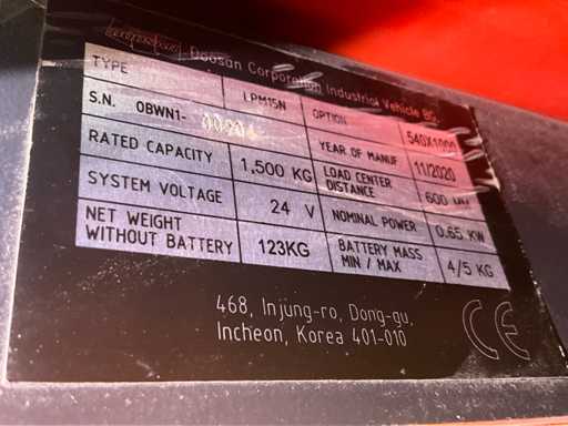Camion Transpallet Elettrico Doosan LPM15N 2020