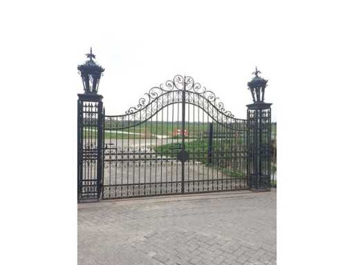 Portale con colonna e portale della lanterna dimensione 400x322x4 cm; Dimensione della colonna con lanterna 357x50x50 cm; La larghezza totale è di 5 metri. Fatta di metallo