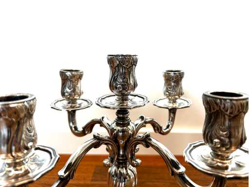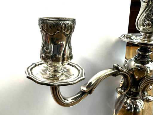 Gioiello Candelabro: Candelabro d'argento; Peso: 1350 grammi; Materiale: Argento sterling di alta qualità; Condizione: D'epoca; Spiegazione: La qualità è stata presa dal rapporto relativo all'articolo. La valutazione è una valutazione di un commerciante certificato di diamanti, basata sui prezzi al consumatore; Prezzo al consumo: € 14.000