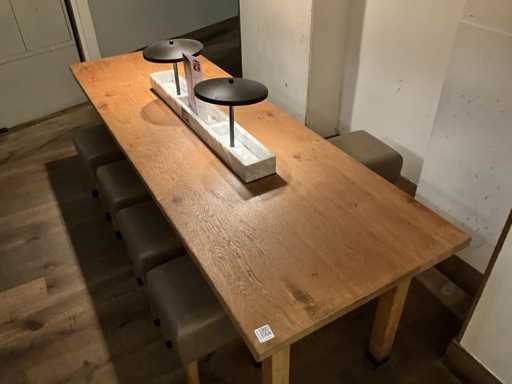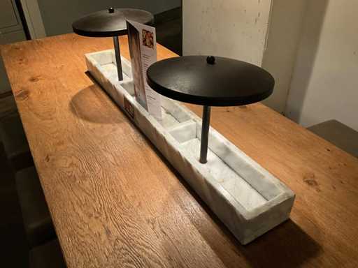 Capanne - Tavolo ristorante con sovrastruttura in marmo e illuminazione