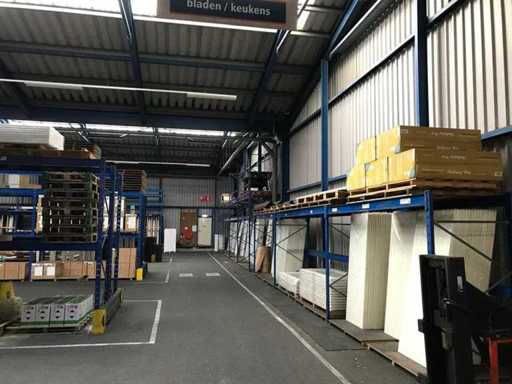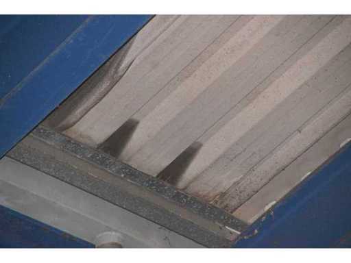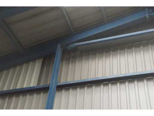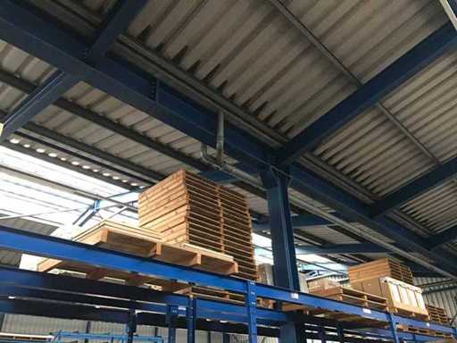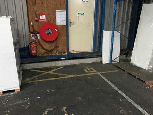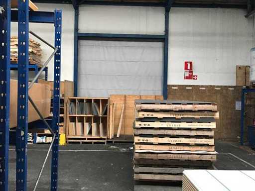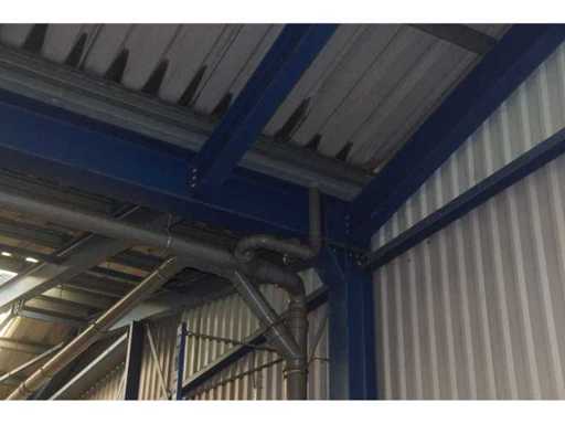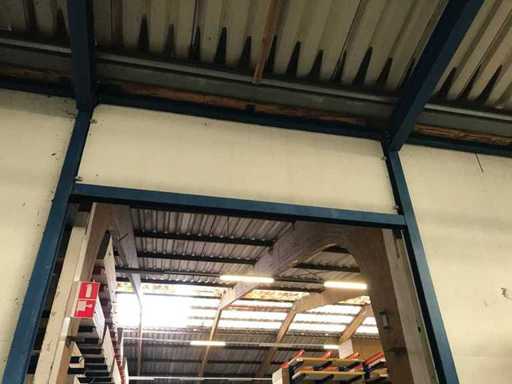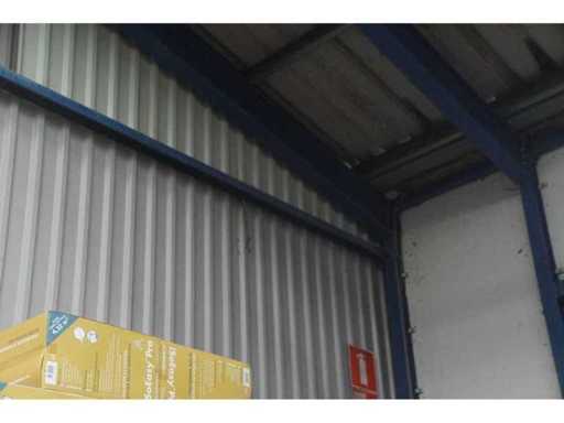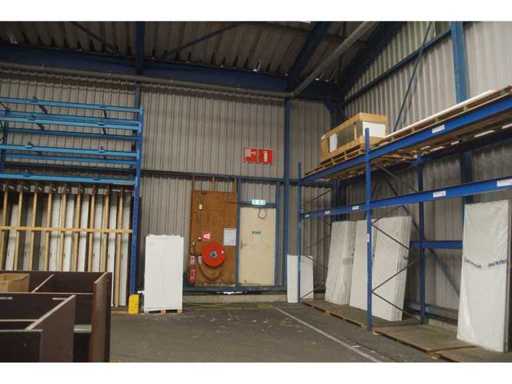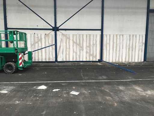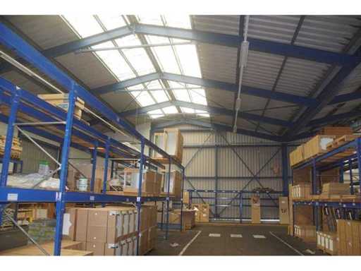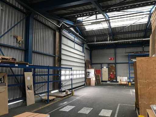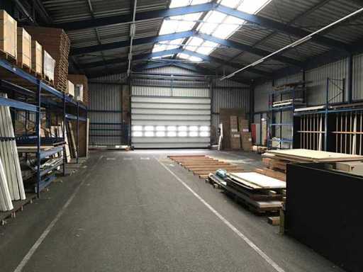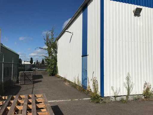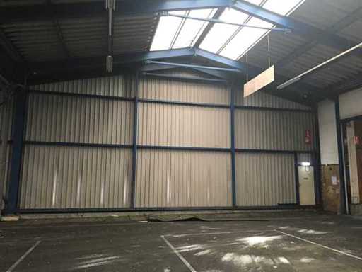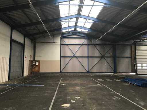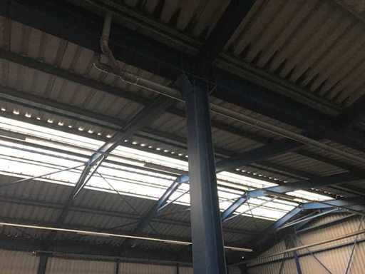 sala industriale smontabile con pesanti capri in acciaio; circa 30 metri di larghezza x 34,5 metri di lunghezza; altezza grondaia 5 metri; altezza crestale 7,25 metri; perfidi 75 mm x 200 mm; rivestimento in acciaio; rivestimento della facciata; inoltre dotato di lucernario; porte d'ingresso e illuminazione; escludendo rack, merci sfuse e pannelli solari; lo smantellamento deve essere eseguito dall'acquirente; Questo deve essere fatto rispettando i requisiti legali di sicurezza; La data prevista di inizio dello smontaggio è il 1° aprile.
