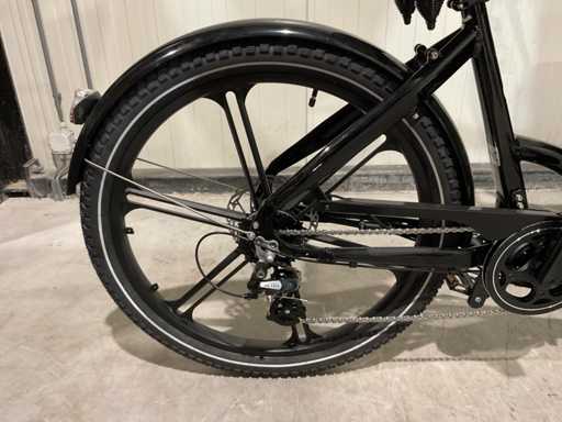 Qualità testate in Germania; Colore: verniciatura a polvere, nero; Motore elettrico 250 Watt, motore centrale Ananda 110 Nm; Batteria 19,6 Ah, 36 volt, Samsung/LG; Pneumatico anteriore 24" x 2,15, pneumatico posteriore 26" x 2,15, antiforatura, striscia riflettente lungo il lato; Universale morbida come sella, rilascio rapido per la regolazione dell'altezza del sedile; Manubrio regolabile 115-130 cm, manubrio imbottito; inutilizzati nella plastica