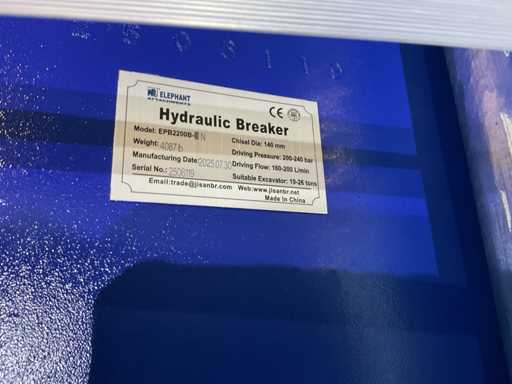 Diametro scalpello: 140 mm; Diametro del tubo: 1 pollice; Pressione operativa: 200–240 bar; Portata dell'olio: 160–200 L/min; Peso del frantumatore: 1.875 kg; Frequenza di ictus 320–650 bpm; Non utilizzati