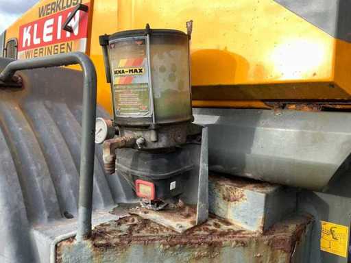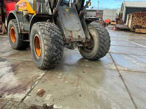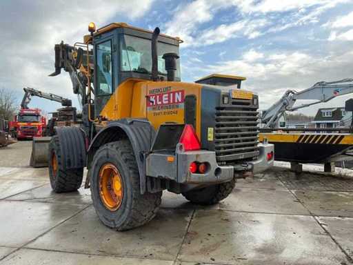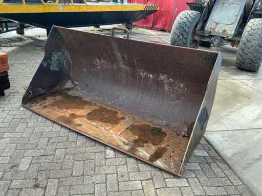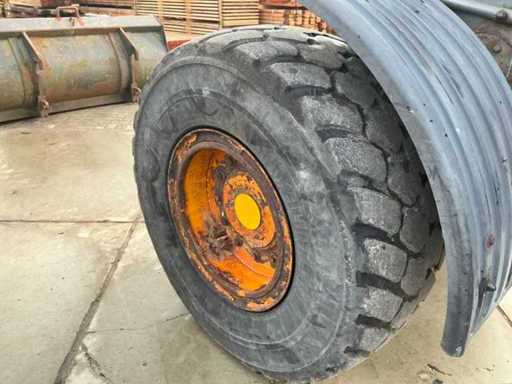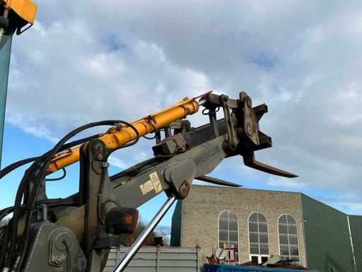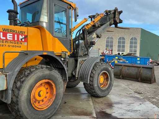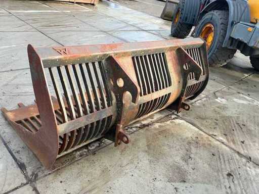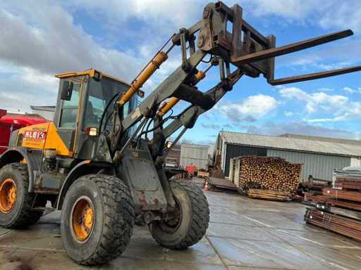 Equipaggiato con assi ZF, trasmissione ergopower ZF, rilevamento carico, sterzo a joystick, lubrificazione centrale con grasso BekaMax, carrello a forchetta, secchio chiuso a terra e secchio per macerie (2450mm)