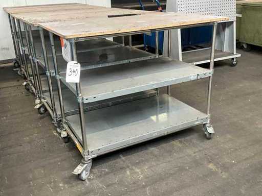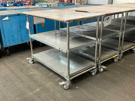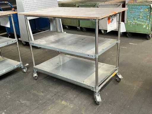 acciaio tubolare cromato; 3 livelli; di cui 2 mensole in acciaio; piano del tavolo in compensato;