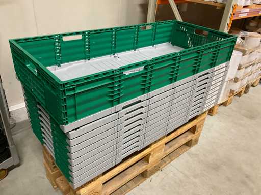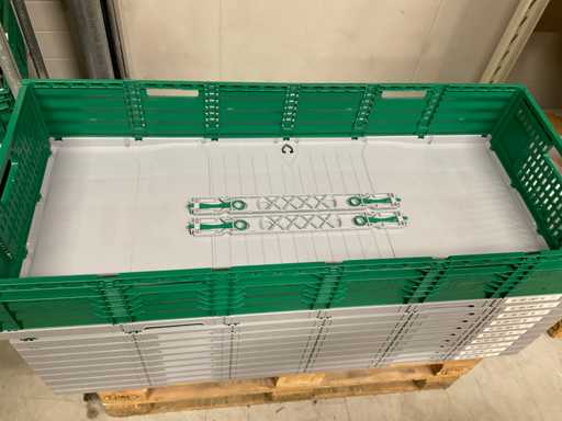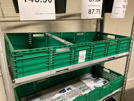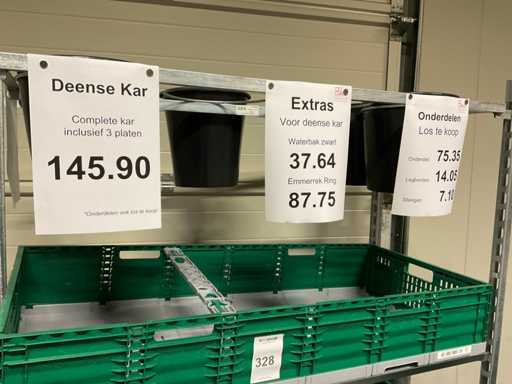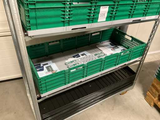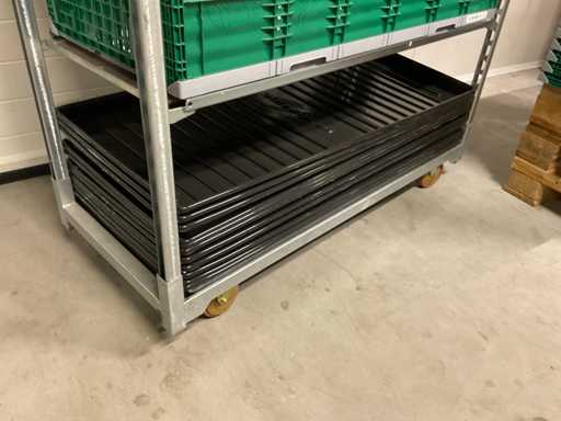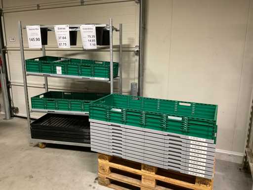 Composto da carrello danese con 2 ripiani e piatto con anelli secchio e 4 secchi Oltre a 12 casse di fiori pieghevoli