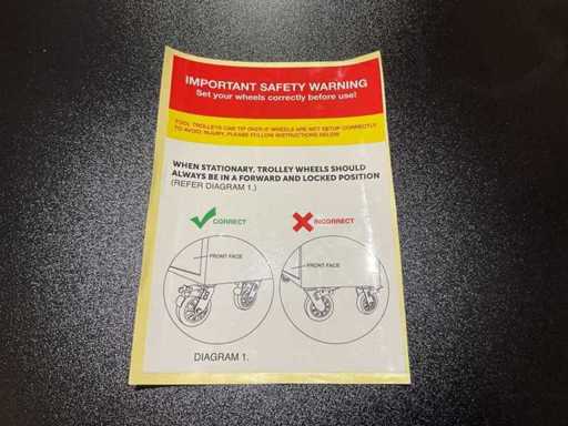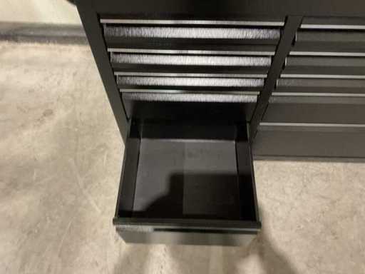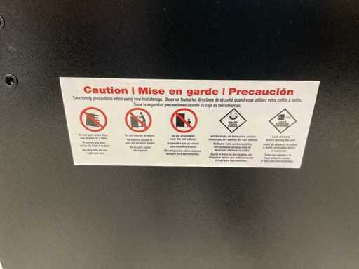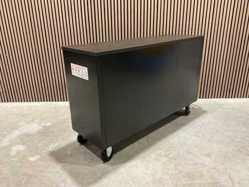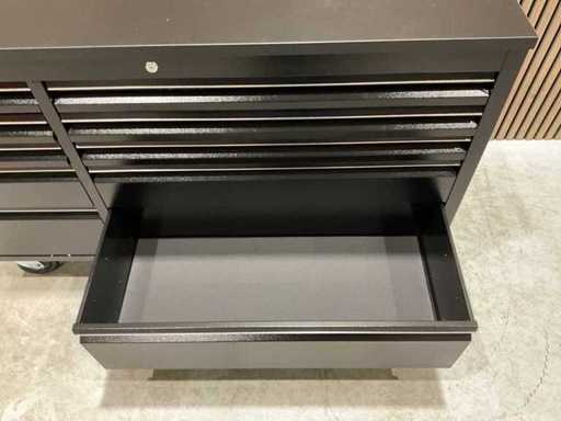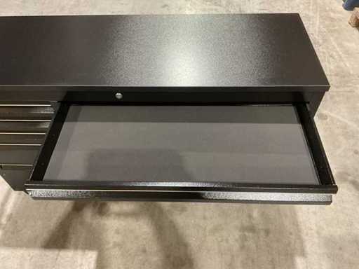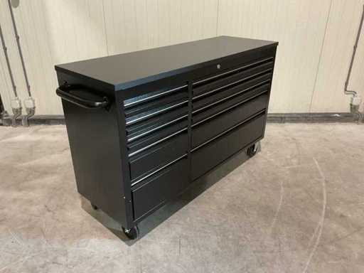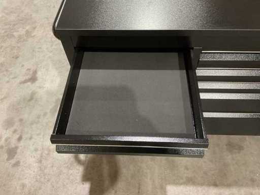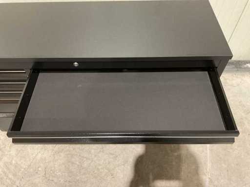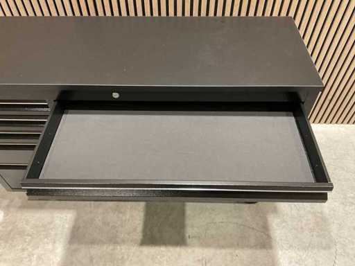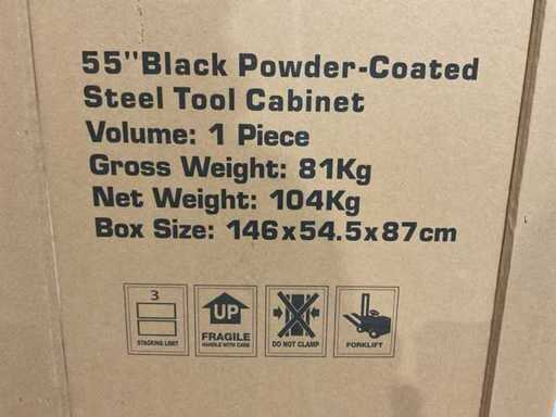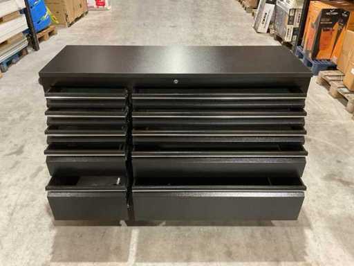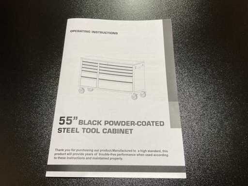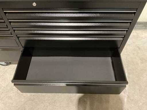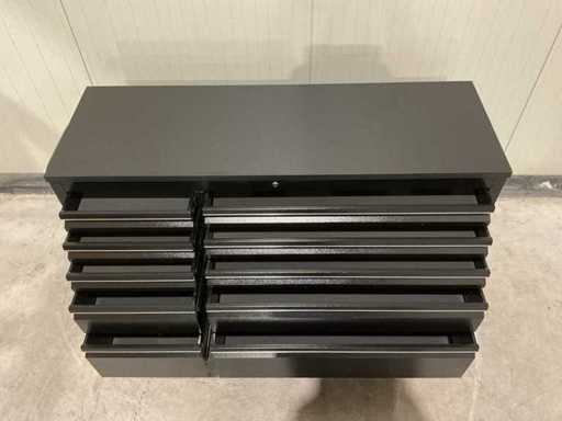 Materiale: acciaio; Rivestimento a polvere nera; 10 cassetti; chiusa centrale; 4 ruote, 2x girevoli con freno; peso di trasporto: 104 kg; Dimensioni di trasporto: 146x54,5x87 cm; Inutilizzati nella scatola