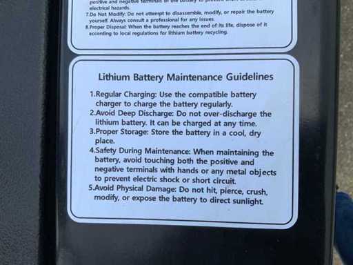 Questo camion è nuovo e inutilizzato e dotato di una batteria agli ioni di litio; puoi ricaricarla in qualsiasi momento o nel mezzo senza conseguenze negative. Con i documenti di conformità CE per richiedere la registrazione della targa presso le autorità del tuo paese, con luci di guida a LED anteriori e posteriori, Bluespot e faro. Batteria agli ioni di litio a bassa manutenzione 80V/350AH.