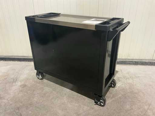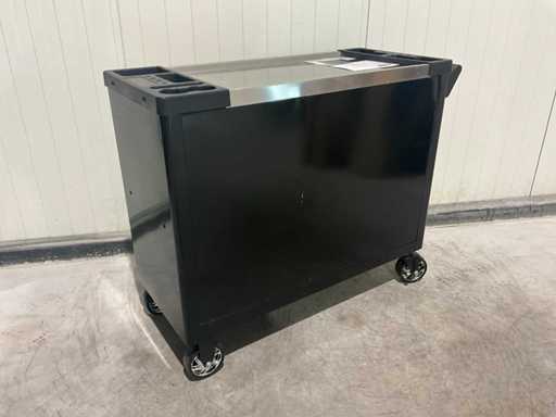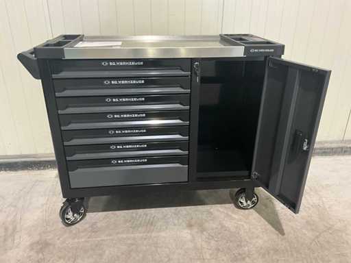 Dotato di 7 cassetti, 7 dei quali pieni di attrezzi; porta laterale; strumenti professionali in cromo-vanadio; carrello per attrezzi pesanti; piano da lavoro robusto; 4 ruote; manico robusto; Non utilizzato in scatola (dimensioni di trasporto 105x50x80 cm)