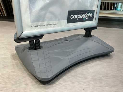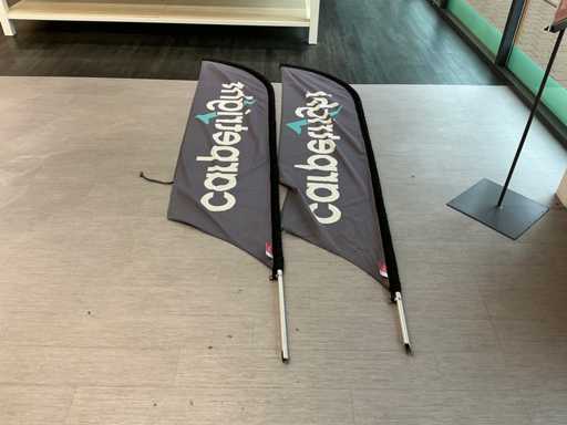 Il cartello sul marciapiede misura 95x60x150 cm Le bandiere sono 60x310 cm