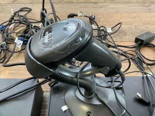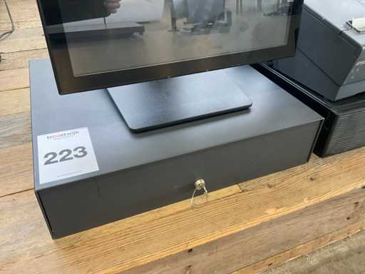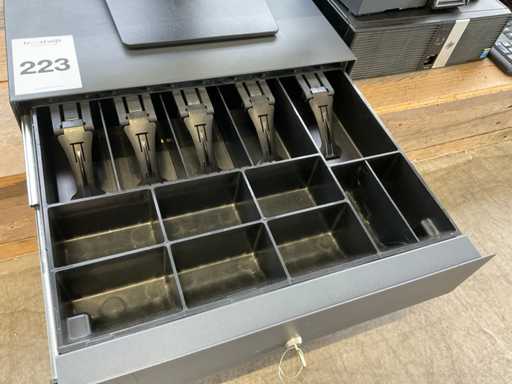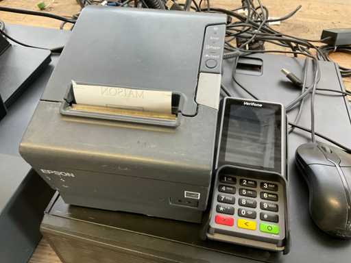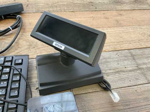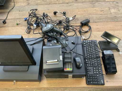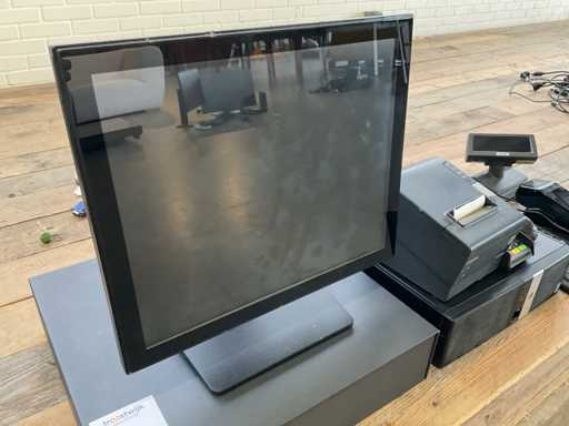 Composto da computer desktop HP senza hard disk, schermo IIyama, cassetto per casse con chiave, stampante di ricevute Epson, display per il cliente, scanner dei simboli per la mano, bancomat, tastiera e mouse