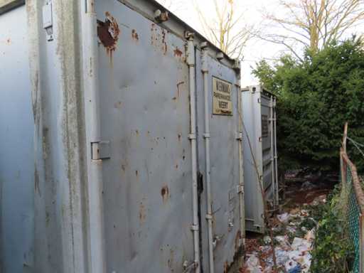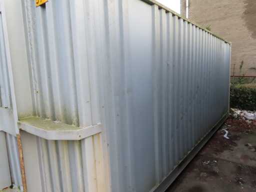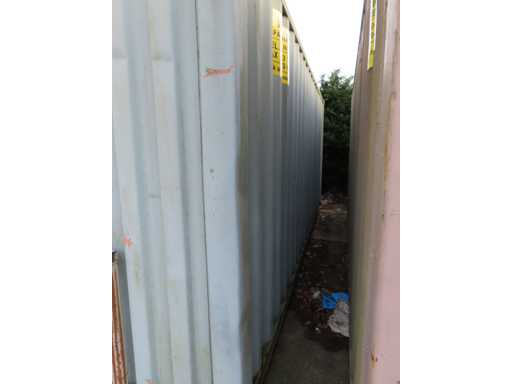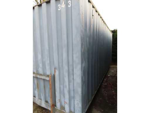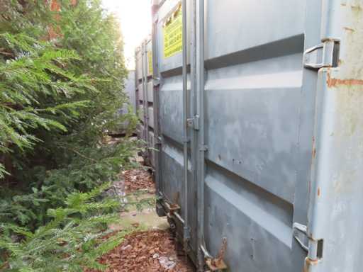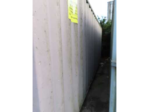 Contenitore da 20 piedi con sollevamento a gancio chiuso. Numero container per le questioni: 88-590-344-269-343. Il container 590 ha un'altezza di circa 260 cm