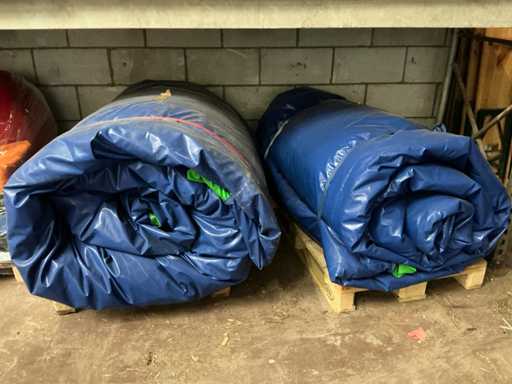 È del marchio JB - È ancora in condizioni davvero buone - certificato compreso - 13,5 metri su 2 pallet - Consiste in 2 cuscinetti d'aria separati - entrambi possono essere usati separatamente, lo scivolo è davvero ottimo per la piscina - eccezione. soffiatore