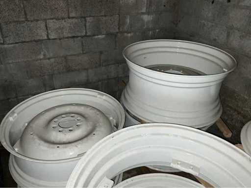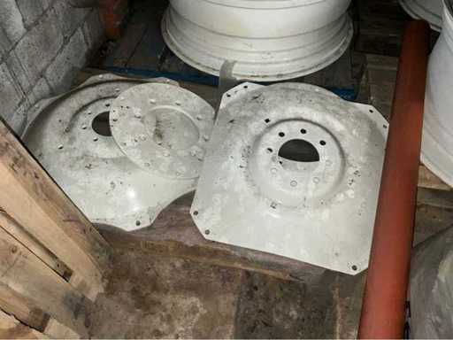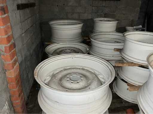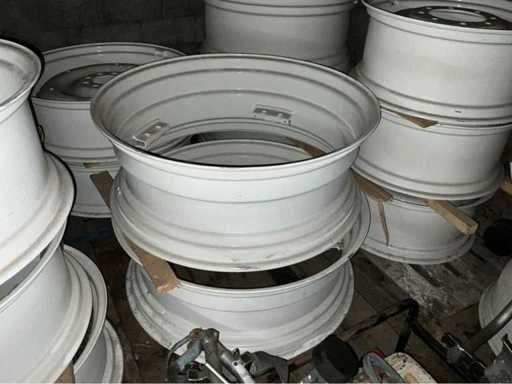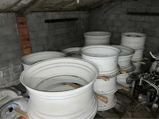 Composto da 19 pezzi di vari diametri esterni, inclusi 6x 1020 mm con e senza flangia interna + 6x 770 mm con e senza flangia interna + 2x 1025 mm con flangia interna + 2x 850 mm con flangia interna + 1x 474 + 3x vari diametri, tutto su pallet sabbiata e verniciata nel colore originale, + circa 6 piastre interne per flange