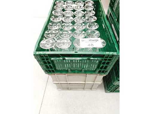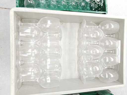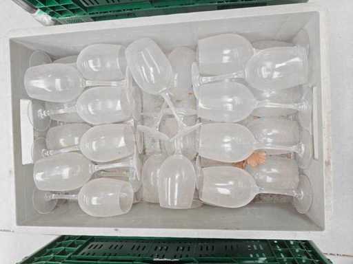 3 contenitori di trasporto contenenti circa 89 bicchieri di vino bianco a piedi