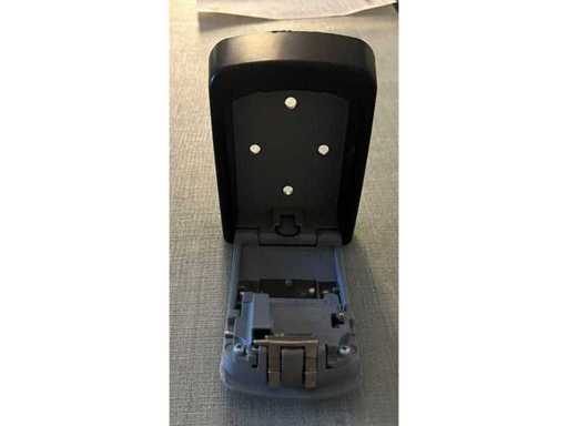 Chiave metallica della Master Lock con codice numerico a 4 cifre. Presente codice noto! Adatto per il montaggio a parete. Include alloggiamento originale, usato ma completamente funzionante. Ideale per chiavi di riserva o di accesso. Lievi segni di utilizzo visibili, nessuna influenza sul funzionamento.