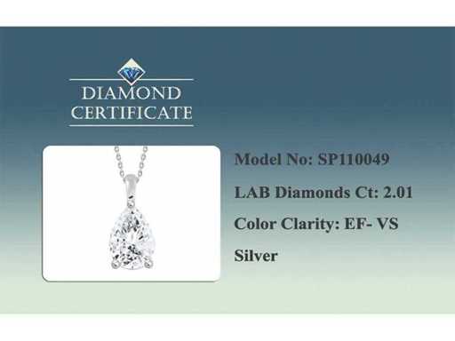 Collana bianca d'argento 925 con ciondolo e diamanti coltivati in laboratorio da 2,01 ct