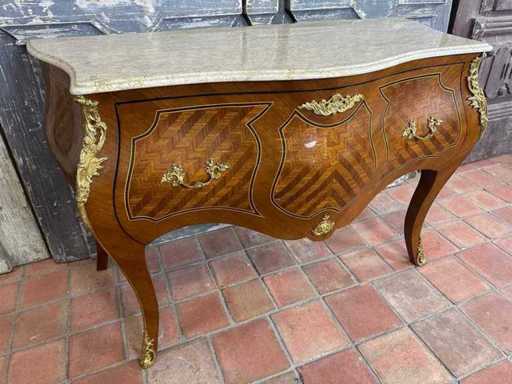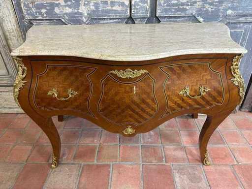 fatto di legno; con piano in marmo; Accessori in bronzo V.V.