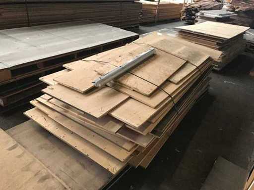 pallet con compensato usato; circa 23 registri; Varie dimensioni e spessori