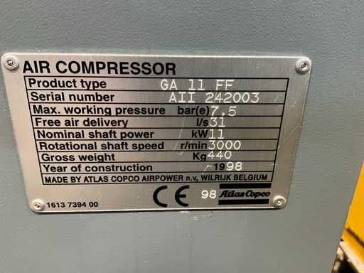 Compressore d'aria Atlas Copco GA 11 FF del 1998