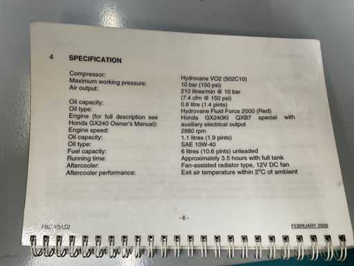 Equipaggiato con: motore a benzina Honda GX240, compressore Hydrovane VO2.