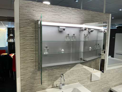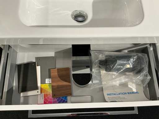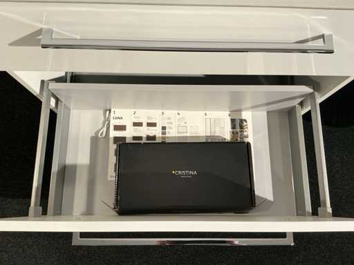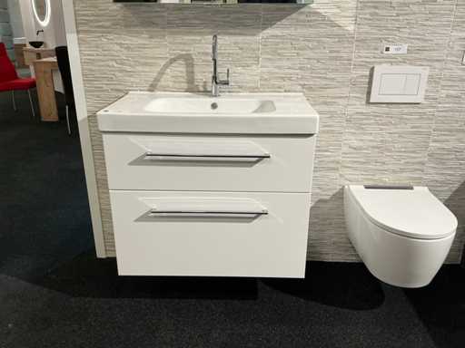 Composto da un mobile a specchio a LED Dansani (80x70cm) con 2 mensole, un lavandino Minuet (81x45,5cm) con rubinetto per il lavandino Christina Pic, un mobile base (80x46x64,5cm) con 2 cassetti.