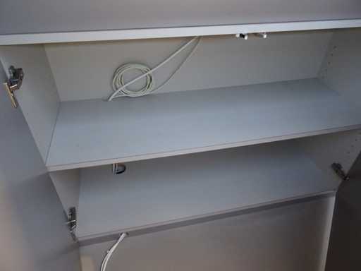 Composto da scrivania con armadietto per riporre, 4 porte e unità cassetto, dimensioni totali: 115x280x225cm (hxwxd), dimensione del piano scrivania: 240x110cm (larghezza), il piano è avvitato all'armadietto di stoccaggio