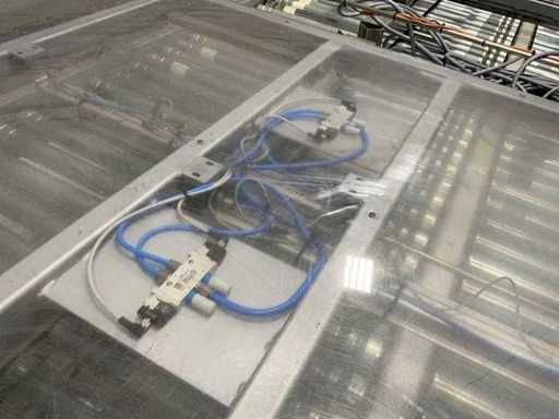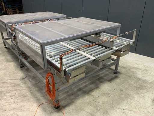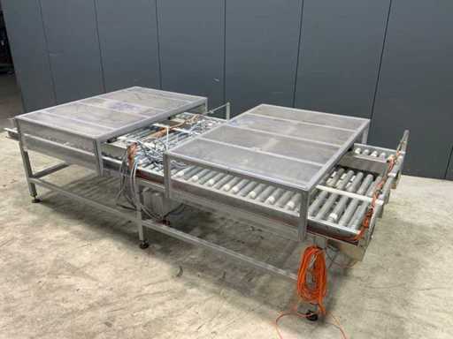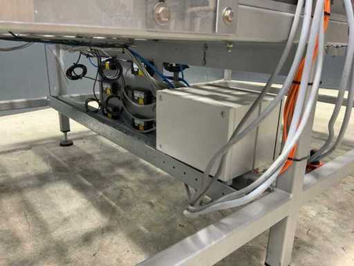 Dotato di 3 nastri trasportatori a rulli, larghezza 450 mm.