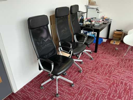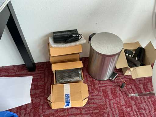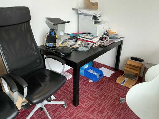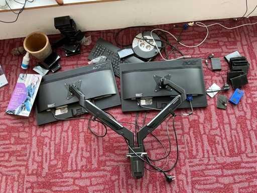 Composto da 3 sedie da ufficio, 4 sgabelli, tavolo, armadio a scomparti, 2 schermi Acer sul braccio del monitor, HP laserjet pro MFP M477fdw, questo lotto deve essere consegnato pulito con la scopa. Questo lotto si trova al primo piano accessibile tramite una scala.